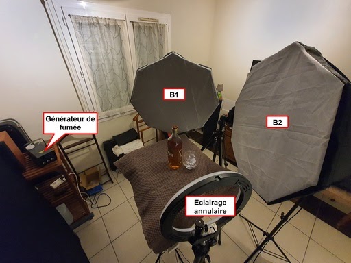 - deux boîtes à lumières avec des ampoules que j’utilise habituellement pour réaliser mes vidéos, (B1 & B2)